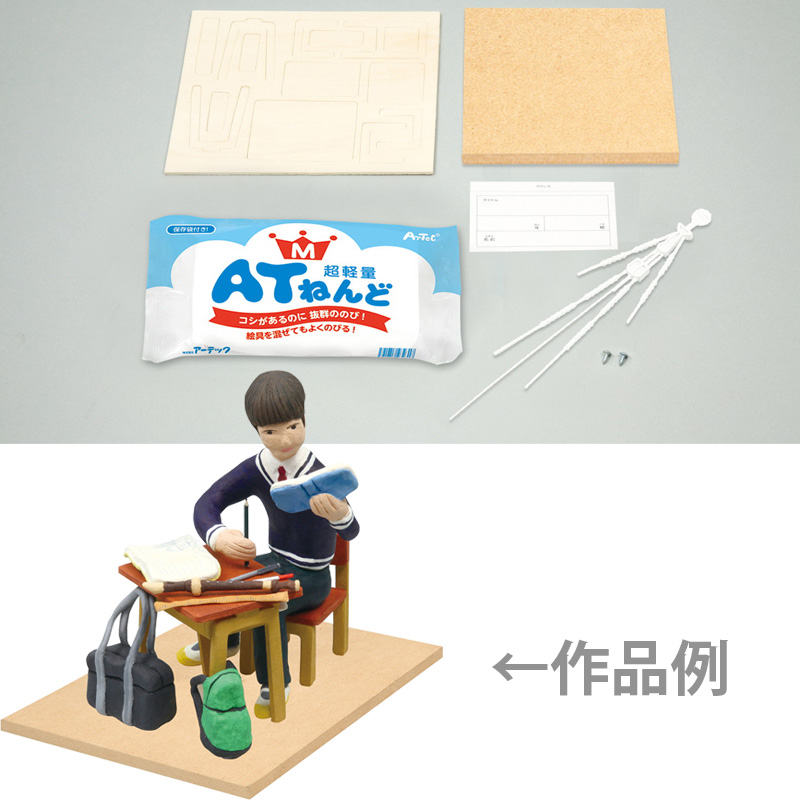 ■セット内容:机と椅子ジオラマベース小200×167×3.5mm×1、エアースタイリスト芯小(組立・針金組込済・木ねじ付)180×40×7mm×1、土台板木製170×160×9mm×1、ATねんどM×1、名前札×1