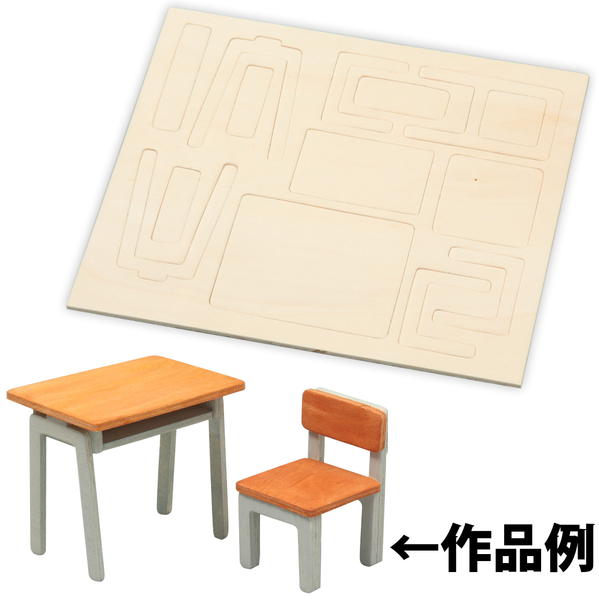 机と椅子 ジオラマベース小 木製 工作 キット 小学生 図工 美術 木工 子供 キッズ 学習教材 作品