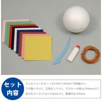 フェルトシールセット小(100×100mm 10色組)×1、プラ製ヘラ×1、工作ボンド×1、スチロール球(φ100mm)×1、丸ひもゴールド(φ1×4mm)×1、型紙付φ100mm