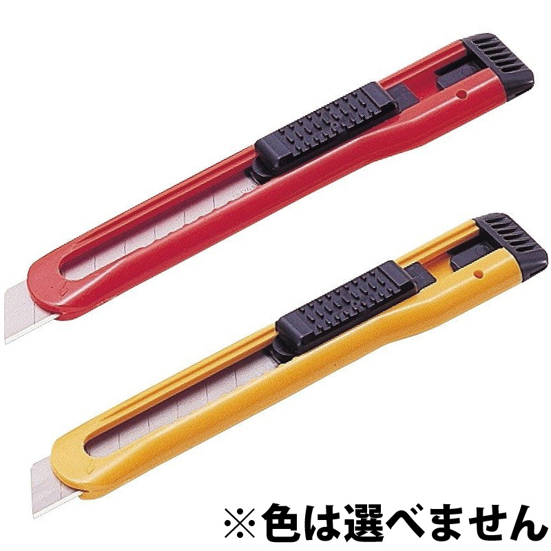 オートロック機能により使用中は刃が自動的にロックされ、スライド部分を触らない限り動くことはありません。刃折り抜け落ち防止機能によりスライド部分が最後部に来ると刃折りがロックされ、刃が抜け落ちる心配がありません。※赤または黄の取り混ぜです。色は選べません。