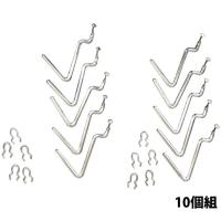 立体的な作品を吊り下げたり、油絵などの展示ができる有孔パネル専用フックです。少し重い作品の展示には安心してお使いいただけます。L型フックは額縁や他の作品を受ける受け金具としても使える点がU型フックとの違いです。安全で錆びないクロームメッキ仕様