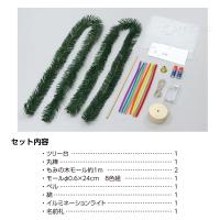 ■セット部品:もみの木モール(約1m)×2、モール(約φ0.6×24cm)8色組×1、ベル×1、ツリー台×1、丸棒×1、綿×1、イルミネーションライト×1