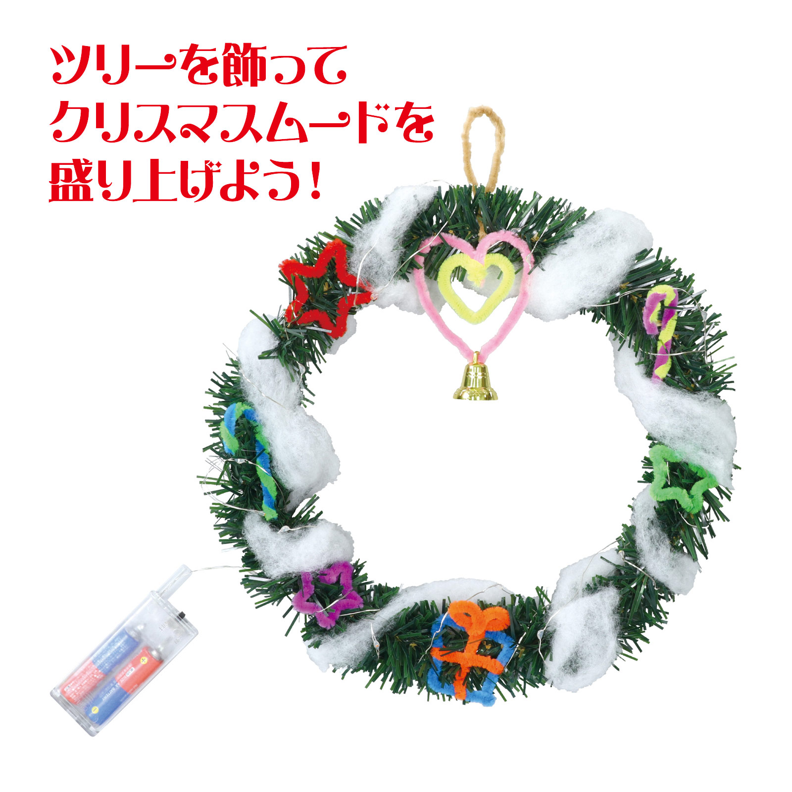 クリスマスリース 手作りキット イルミネーションライト付き 25cm 工作 おしゃれ 飾り 雑貨 置物 玄関 材料 オブジェ