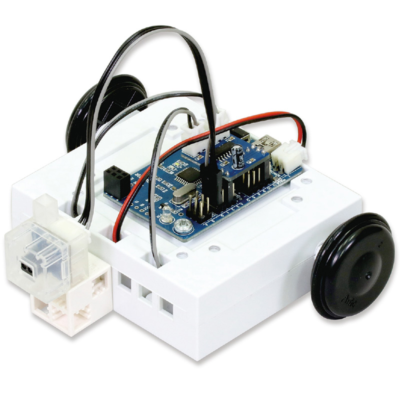 セット内容:モーター付ロボット台座×1、スタディーノミニ×1、スタディーノミニ用DCモーター拡張基板×1、赤外線フォトリフレクタ×1、センサー接続コード×1、基本四角ブロック×1、ブロックジョイント×2、タイヤ×2、タイヤゴム×2、USBケーブル×1