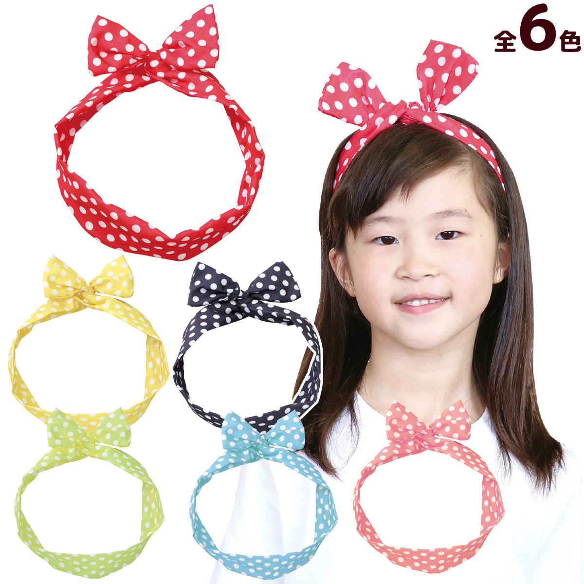 かんたん リボン カチューシャ 水玉 ドット 学芸会 お遊戯会 衣装 子供 キッズ 運動会 体育祭 ダンス 踊り ヘアバンド ヘッドバンド 髪留め コ