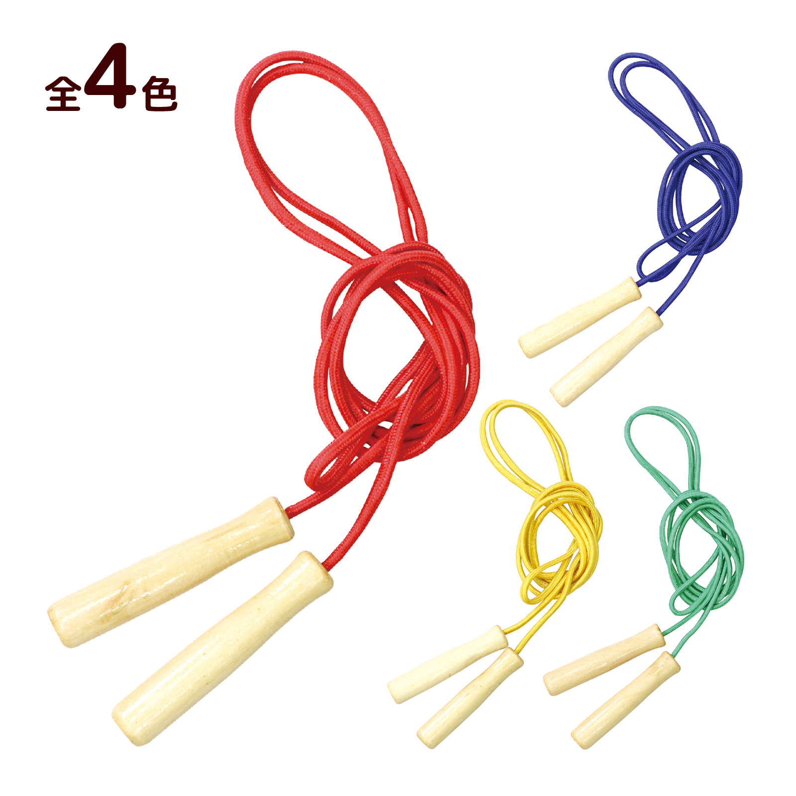 カラーバリエーションが豊富な木柄なわとび!/※グリップ(持ち手)の中で、結び目を作って、長さ調節ができます。