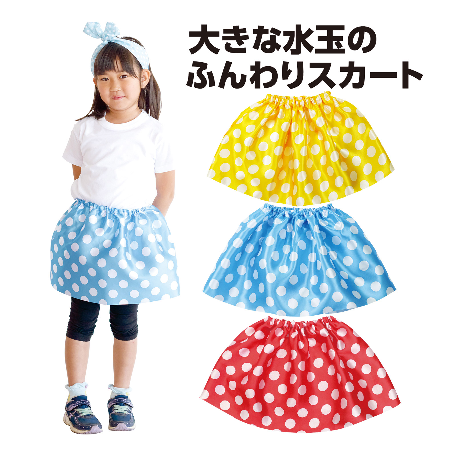 水玉ソフトサテンスカート 黄 水色 ドット 学芸会 衣装 幼児 小学生 保育園 幼稚園 子供 運動会 文化祭 演劇 発表会 お遊戯会 キッズ ダンス