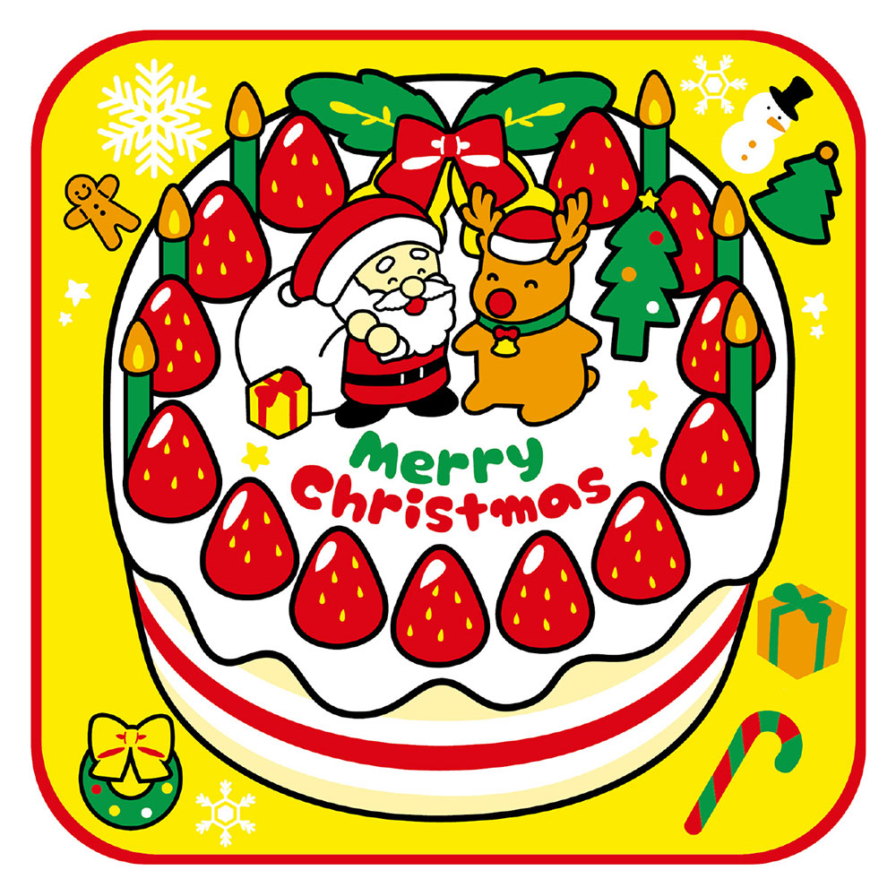 クリスマスケーキ柄のタオルハンカチ!商品サイズ:200×200mm