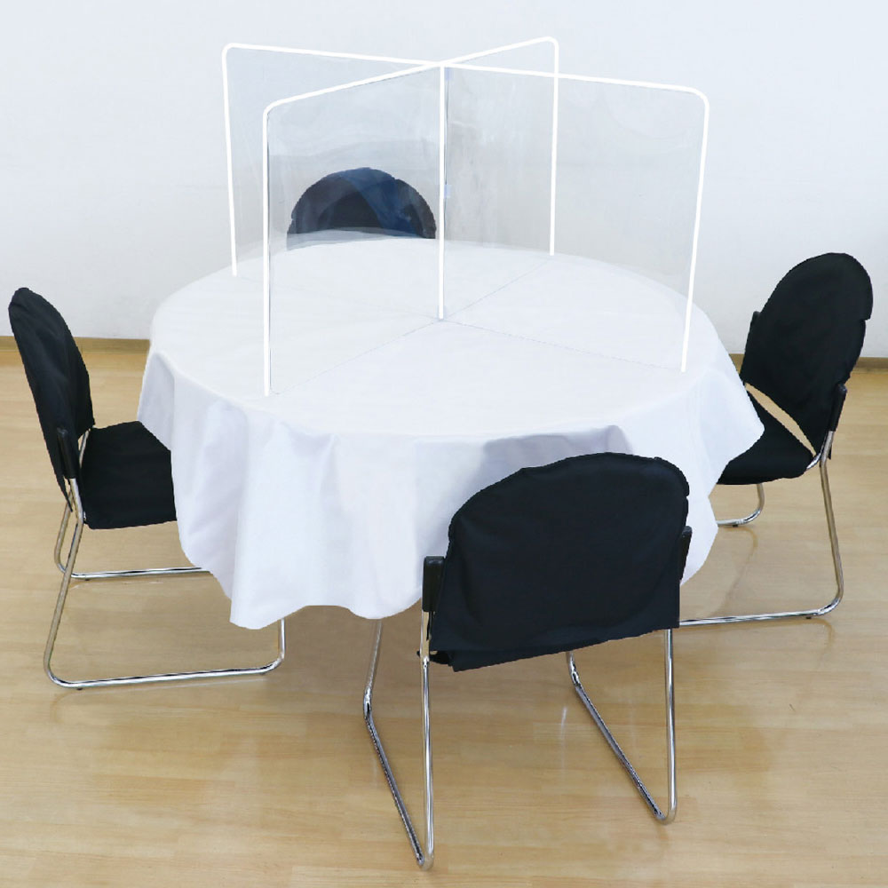 店舗やオフィスのウイルス対策に!●十字型の4人用パーテーション●拡張性に優れており、6人用、8人用など用途に応じてパーテーションを追加できます●透明度の高いPET素材でアルコールや洗剤での清拭が可能●平たくたたんだ状態で保管できます。●角R加工で、安心・安全。アクリルより割れにくい!●2mm厚高透明度PET製●組立簡単●拡張OK!単品パーツ追加で連結できます。6人がけ、8人がけにも!