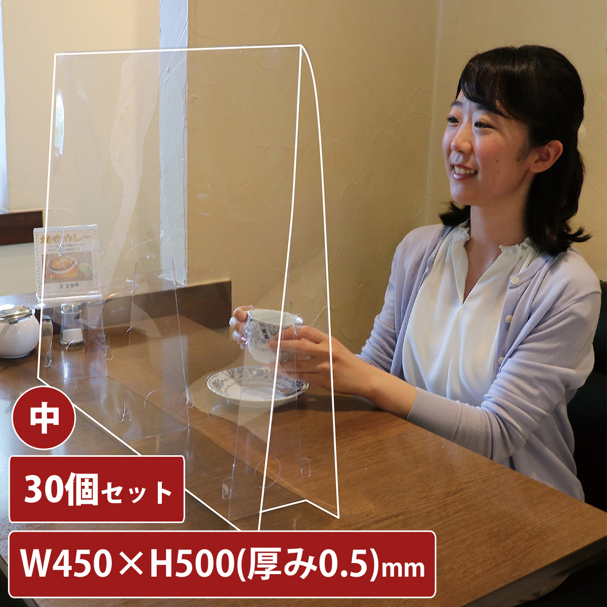 アクリル板 コロナ対策 透明 飛沫防止 中 30個セット 幅450mm 0.5mm厚 アクリル パーテーション パネル 感染防止 感染予防 卓上 衝立