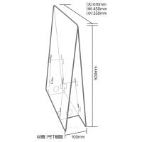 組み立て簡単!軽量設計で持ち運びもラクラク。透明度の高いPET素材使用。対面での接客や打ち合わせ、会議などの飛沫防止に!完成サイズ:W350×H500×D100mm