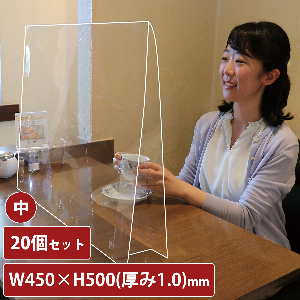 アクリル板 コロナ対策 透明 飛沫防止 中 20枚セット幅450mm 1mm厚 アクリル パーテーション パネル 感染防止 感染予防 卓上 衝立 間仕