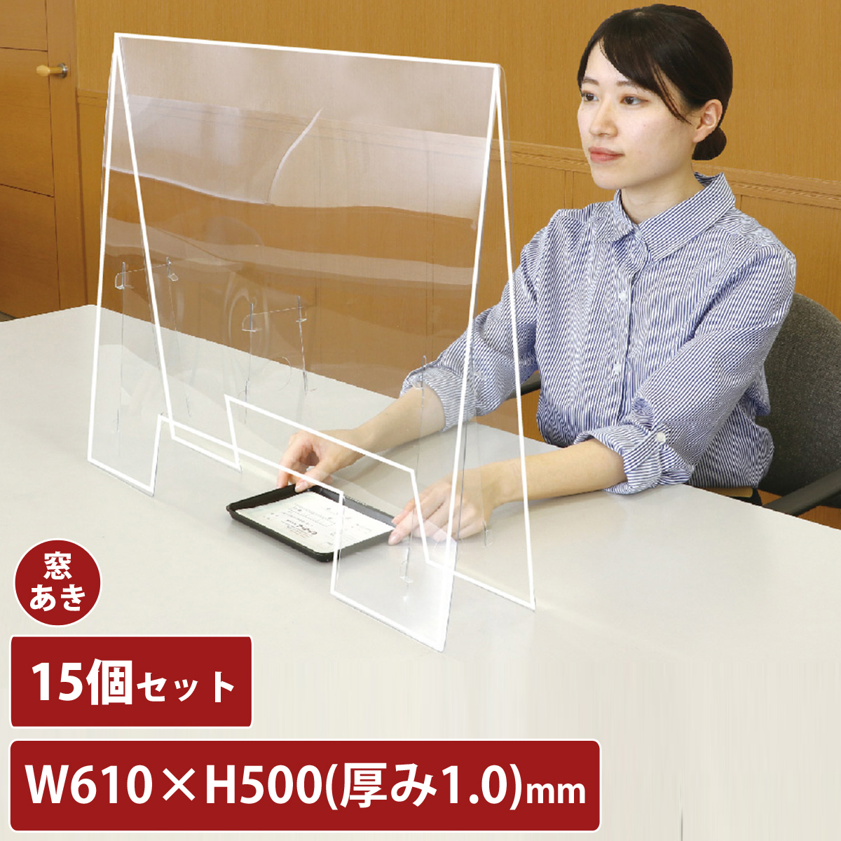 アクリル板 コロナ対策 透明 飛沫防止 大 窓あり 15個セット 幅610mm 1.0mm厚 アクリル パーテーション パネル 感染 防止 予防 卓上
