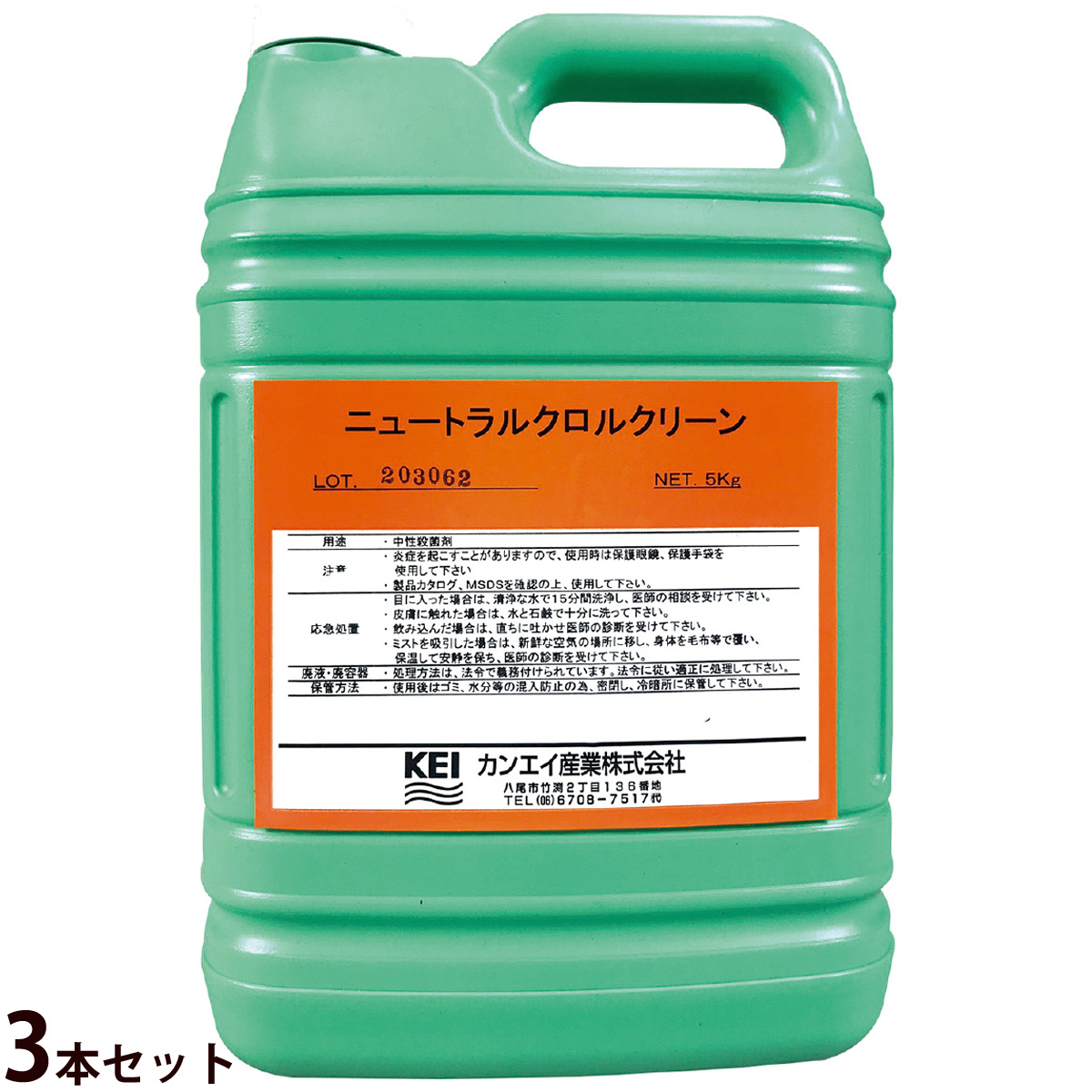 除菌剤 ニュートラルクロルクリーン 5kg 3本セット 次亜塩素酸ナトリウム 生ごみの消臭 調理器具 消毒 洗浄 キッチン 台所 除菌スプレー用