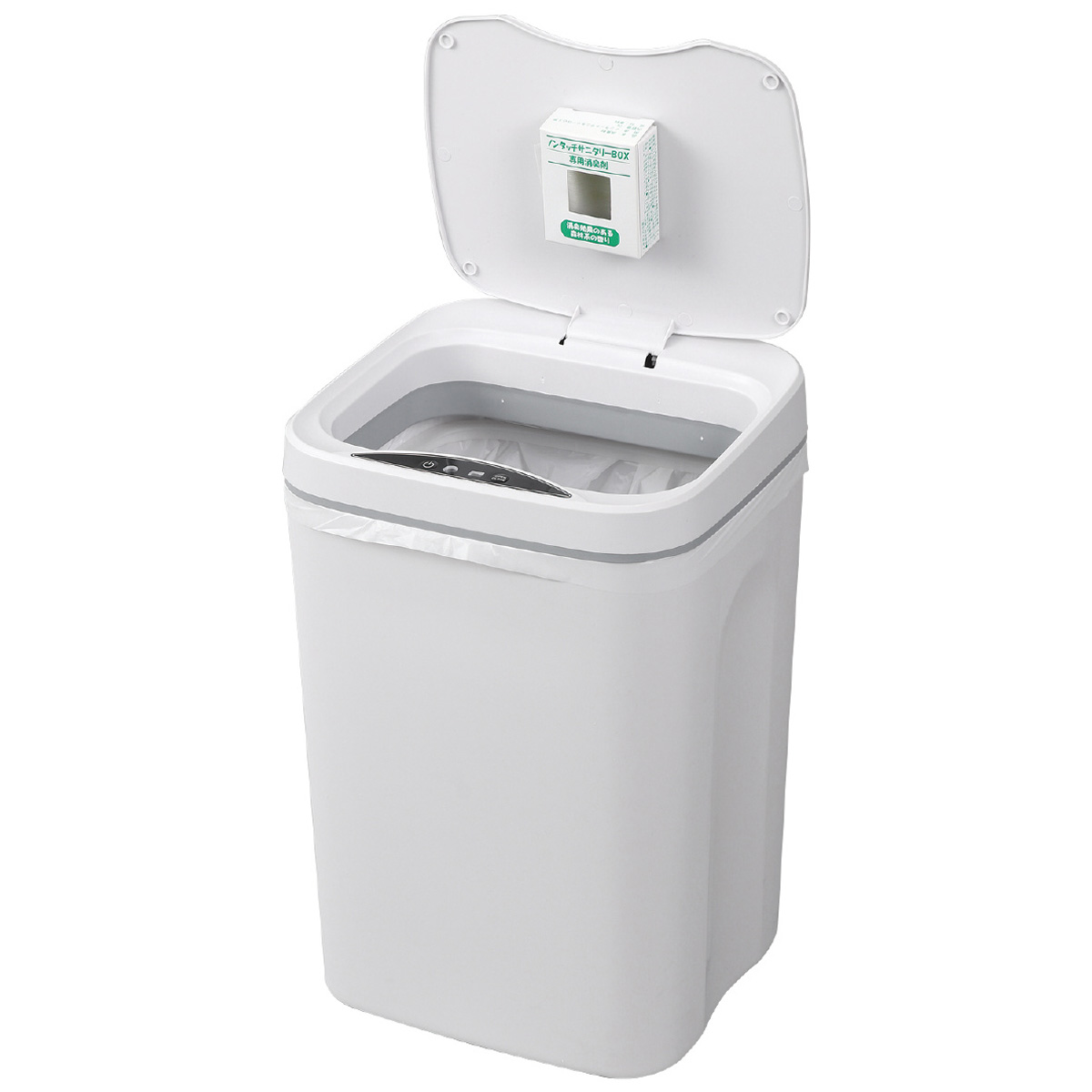 赤外線センサー、プッシュセンサー、衝撃センサーで開く。使用済みのおむつ、ペットシート、キッチンの生ゴミなど気になる匂いのもとをシャットアウト。商品サイズ:235×215×345mm、消臭剤シート/65×50mm、専用消臭ゴミ袋/530×530(430)mm