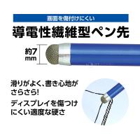 ディスプレイを傷つけにくい適度な硬さの金属繊維製のペン先柔らかく滑らかな書き心地!クリップ&ストラップホール付で携帯に便利。商品サイズ:約115×φ10mm