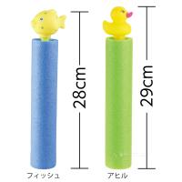 押し棒に動物が付いたスポンジ水てっぽう!商品サイズ:φ50×280mm(フィッシュ)、φ50×290mm(アヒル)