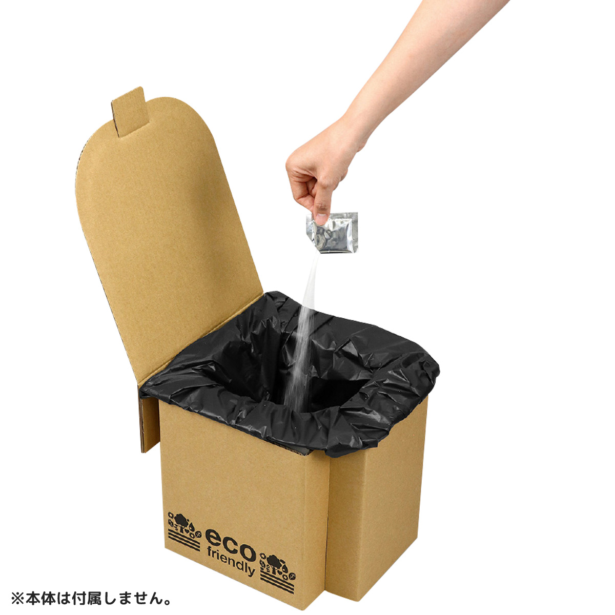 日本製・環境に優しい米ぬか入りバイオマスポリ袋採用。抜群の抗菌&消臭力。商品サイズ:米ぬか抗菌消臭処理袋/640×500mm/※本体(簡易トイレエコダントイレ)は付属しません。