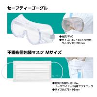 ■セット内容:防護服L×1、セーフティーゴーグル×1、不織布マスク(個包装)×1、ニトリルグローブL×1組、使い捨てビニール製靴カバーロング×1組