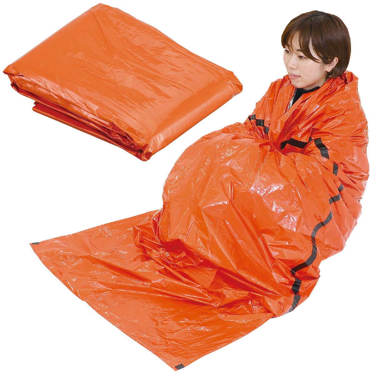寝袋タイプで足まであったか!オレンジ色で避難時でもよく目立ちます