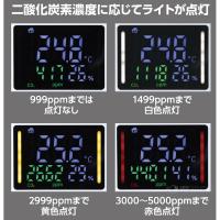 温度、二酸化炭素濃度、湿度、気温が測定可能。99件までデータ記録可能!商品サイズ:170×120×90mm