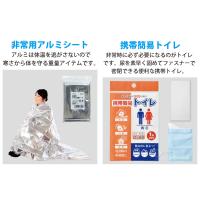 ■セット内容:アシストバッグ黒×1、防災用スティックライト×1、非常用アルミシート×1、携帯簡易トイレ×2、防災用ウェットティッシュ×1、不織布マスク×2、エイトバン(2枚)×1、レインポンチョ×1、軍手×1組