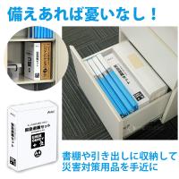 A4サイズのボックス入りで、デスクや本棚などにぴったり収納!いざというときにすぐに取り出せる便利な避難セットです。商品サイズ:295×210×55mm