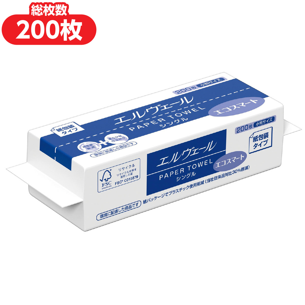 ペーパータオル 衛生用品 消耗品 紙 業務用 家庭用 使い捨て 日本製 手拭き 清掃用 エルヴェールペーパータオルシングル200枚小判紙包装タイプ
