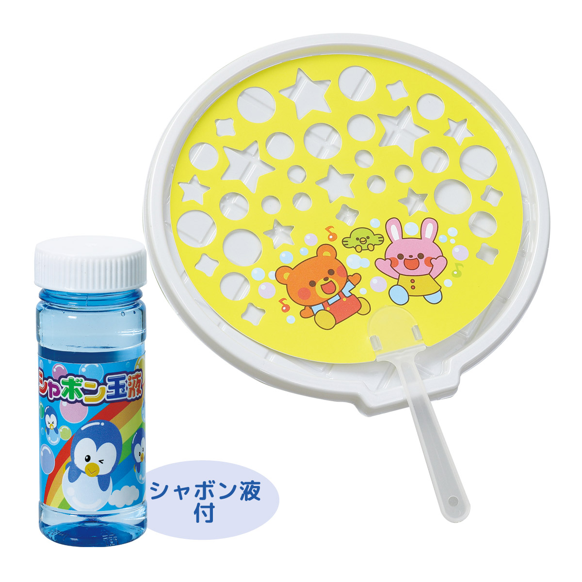 うちわを振ってたくさんのシャボン玉をつくろう!商品サイズ:うちわ/185×255mm、受け皿/φ200×10mm