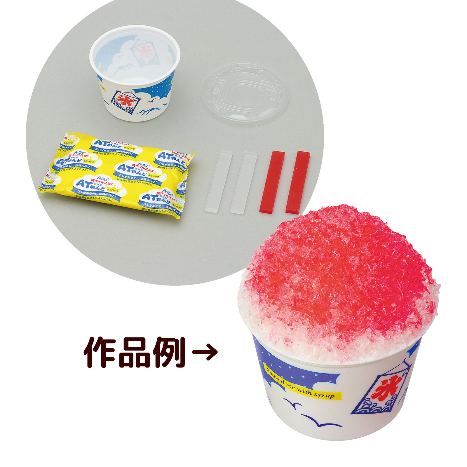 ■セット内容:かき氷カップ×1、ATねんどミニパック×1、おゆまるクリア×2、おゆまる赤×2