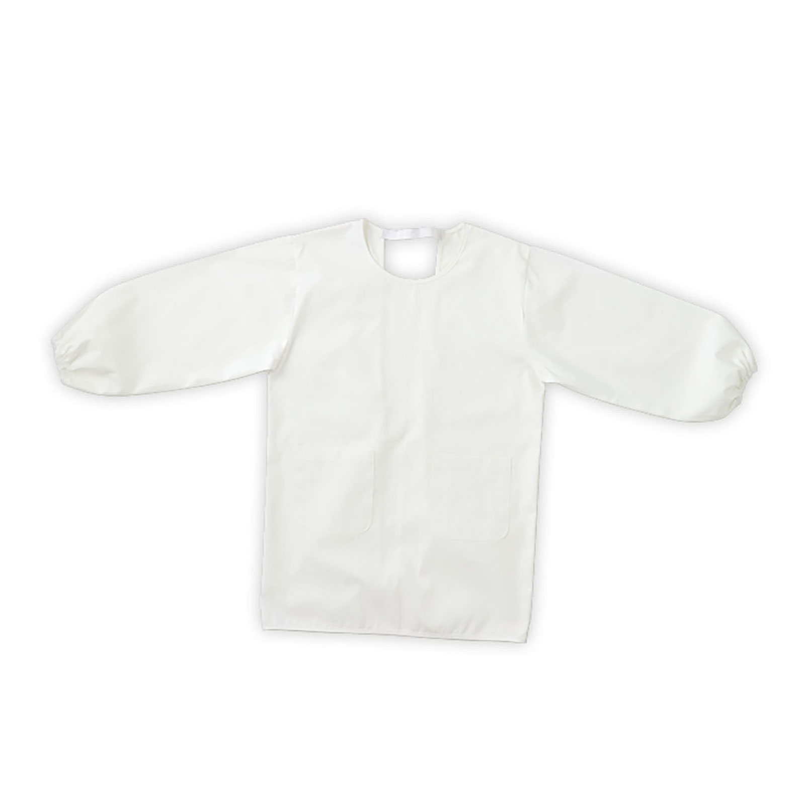 左右にポケットが付いた、使い勝手の良い割烹着タイプの給食エプロンです。首元はゴムバンド仕様で脱ぎ着が簡単、袖口もゴム入りで袖がずり落ちにくくなっています。背中は綿ファスナータイプなので低学年のお子さまでも簡単に着用可能。ネームタグ付きで他のお子さまのものと間違えにくく、学校給食にぴったりなアイテムです。