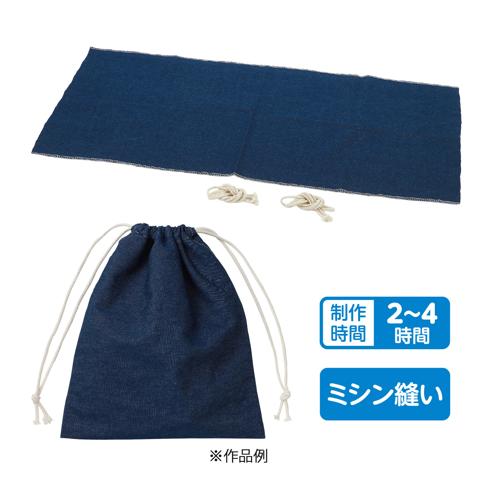 半縫製済みで時短!おしゃれなデニム巾着がつくれる!3辺を縫うだけで簡単につくれる、人気のデニム生地を使用した巾着キットです。おしゃれなデニム素材で、男女問わず使いやすい仕上がりになります。半縫製済み&カット不要で初心者にも安心。製作時間の目安は約2〜4時間です。本返し縫いや直線縫い(ミシン縫い)などの基礎を学べるので、裁縫の入門にもぴったり。完成後は小物入れやバッグインバッグとして活用できます。