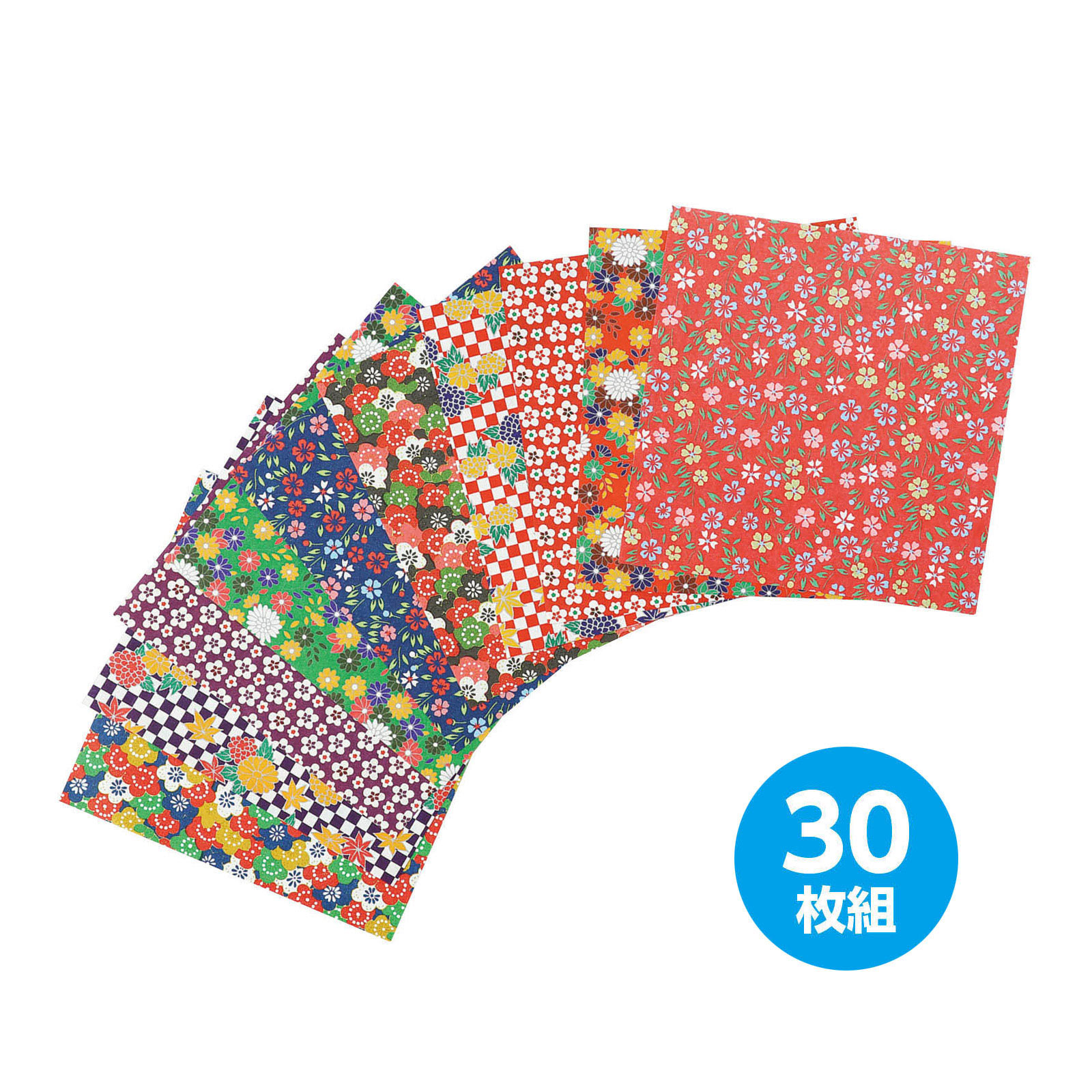華やかな和柄!工作にも飾りにも使いやすい千代紙!日本らしい華やかな柄を集めた便利な折り紙セットです。15cmサイズで扱いやすく、折り紙遊びはもちろん図工や装飾にも活用できます。30枚入りなのでボリュームもあり、用途に合わせて幅広く使えます。