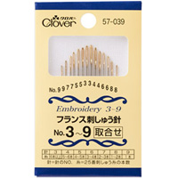 フランス刺しゅう針No.3〜9 57039 クロバー 刺繍 針 縫い針 ししゅう 手芸 裁縫 ソーイング用品 洋裁 ハンドクラフト
