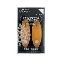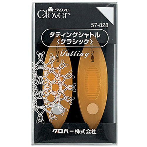 レース編みの技法の一種です。タティングレースは基本の結び目とピコットの作り方、つなぎ方を覚えれば、あとは応用で自由に作品がつくれます。べっ甲調の素材を使用した、角(つの)のないシンプルな形状のシャトル。