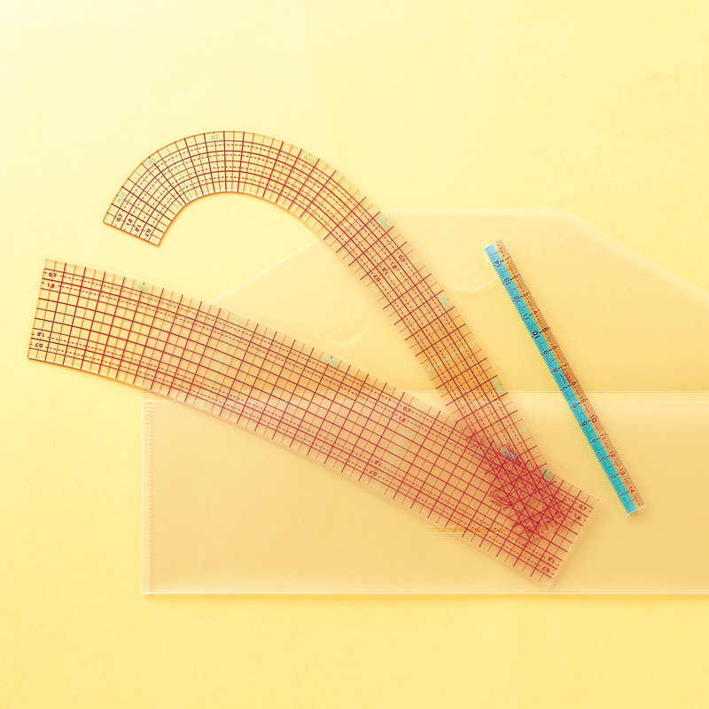 ソーイングで型紙を写す時や製図の際に。2種類のカーブ定規とミニものさし(15cm)がセットになっています。