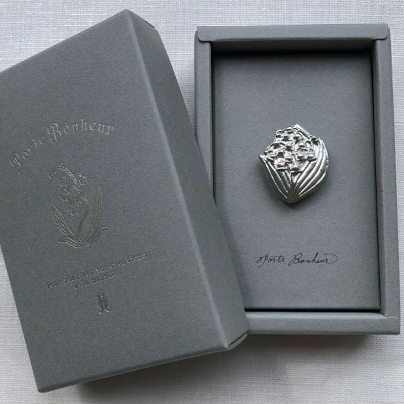 純度100%の錫(スズ)製です。錫は金・銀の次ぐ高価な金属で、抗菌作用が強く金属アレルギーになりにくい素材のため、古くから食器や器に使用されていました。『幸福の訪れ(再来)』という花言葉を持つすずらん。フランスでは5月2日、大切な人にすずらんを贈る習慣があります。そんなすずらんをモチーフにした素敵なお裁縫道具です。「針やすめ」は、刺しゅうなどの最中に針から一時的に手を放すとき、糸がついたままの針を置いておくものです。この商品には磁石が組み込まれていますので、針をしっかりとホールドします。本体に組み込まれた磁石に加えて留めるための磁石も付いていますので、あらかじめ刺しゅう布の上などに留めておいて使用します。