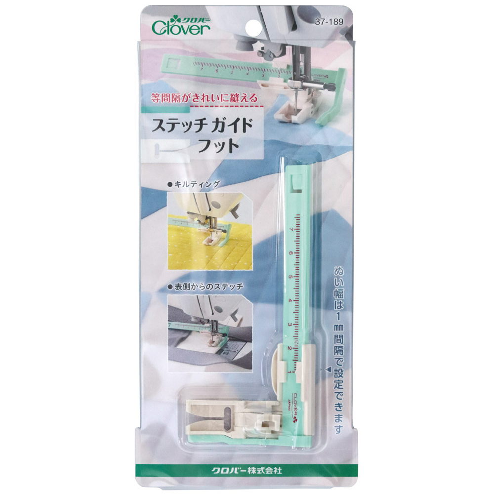 等間隔がきれいに縫えます。ミシンで一定間隔のステッチや平行ステッチをかける時に便利なガイド付の押えです。ぬい幅は、1〜7.6cmの間を1mmピッチで設定できます。布の上からガイドできるので先に縫ったステッチに合わせて縫え、キルティングがきれいにできます。模様縫いを平行にかけたい時にも便利です。折り返したぬいしろの幅を見なくても、表側からミリ単位で設定し縫うことができるので、ステッチがきれいに仕上がります。※ローシャンクの家庭用ミシンに適合します。ハイシャンク(工業用/職業用ミシン、一部の高機能家庭用ミシン)やスラント(斜め針)には、使用できません。※押え棒の穴の中心から針までの間隔が約14mmのミシン、ジグザグぬいの振り幅が7mmまでのミシンに適合します。一定間隔のステッチや平行ステッチのミシンがけに便利なガイド押さえです。先に縫ったステッチに合わせて縫えます。模様縫いを平行にかけたい時も便利です。折り返したぬいしろの幅を見なくても、表側から縫うことができるのできれいに仕上がります。[適合するミシンについて]ローシャンクの家庭用ミシンに適合※ハイシャンク(工業用/職業用ミシン、一部の高機能家庭用ミシン)や、スラント(斜め針)には使用できません。押え棒の穴の中心から針までの間隔が約14ミリのミシン。ジグザグ縫いの振り幅が7ミリまでのミシン。