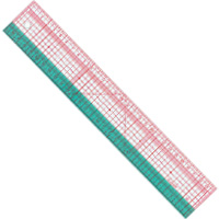 グリーンゾーンの部分では、濃色生地の上でも目盛りが読めます。グリーンゾーンで濃い布の上でも、目盛りが読み取れます。適度な柔軟性を持つソーイング定規。濃い色の布の上でも目盛りが見やすく、45度の角度線で正バイアスを簡単に引くことができます。
