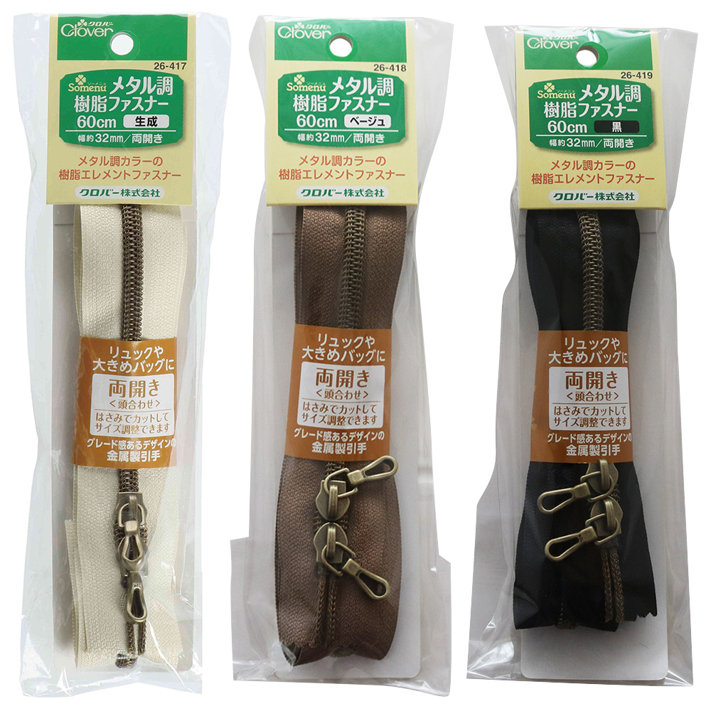 NSメタル調樹脂ファスナー 60cm バッグ リュックサック 裁縫道具 ソーイング ハンドメイド パーツ 材料 手芸用品 ソーメニュ クロバー Clo