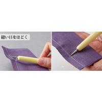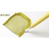 金属へらと鉄筆が1本になって登場!金属へら点、線、面で使えるので様々な用途で便利です。使いやすい先端形状:細かな作業がはかどる斜めカット。布にそわせやすい緩やかな曲面。しるしつけにも使える:先端部分が薄いのでしるしがつけやすい。用途:ぬいしろを倒す/袋物やえり先の角出し/がま口の口金への生地の押し込み/接着剤の塗布/生地のしるしつけ/ミシンの布送りなど鉄筆手芸からペーパークラフトまで幅広く使えます。生地や紙を傷つけにくいなめらかな先端手芸のときは縫い目に入れやすい先細り形状用途:複写紙をつかった図案写し/ペーパークラフトの折り筋付け/ミシン目をほどくなど