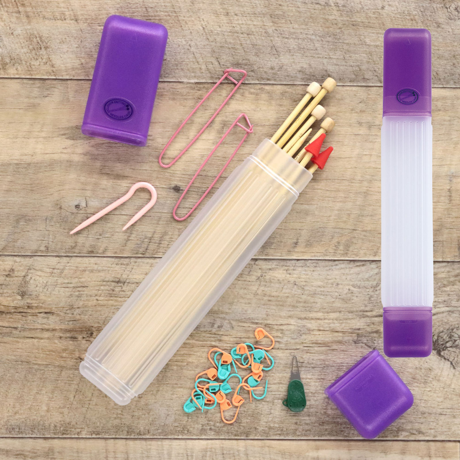 スッキリ収納、持ち運び便利。編み針・編み物用品ケース。バッグに納まりやすいデザインのプラスチック製編み針ケース。※ケースには、編み針・編み物用品は含まれません。