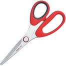手にやさしく、長時間使っても負担が少ないはさみです。軽くて持ちやすいステンレス製はさみ。幅広い用途に使えます。親指を入れる内側にソフトリングを使用。