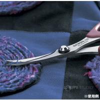はさみの刃先が反っているので、生地を傷つけずに糸をカットできます。先が鋭くスマートな刃。スラッシュキルトやアップリケなど、細かいカットワークに最適です。重ねた布もカットできる丈夫なステンレス鋼の刃です。サック付。