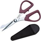アップリケなど重ねた布の上の布だけを切るのに適したステンレスはさみです。下布を傷つけない丸い刃先。アップリケ、リバースアップリケ、モラなど重ねた布の上の布だけを切るのに適したステンレス鋼のはさみです。サック付。