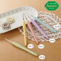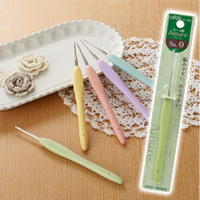 あみものが大好きになる「編みやすい」「持ちやすい」ずっと編んでいたいレース針です。しっかり編める針先と、やさしい手ざわりで指にフィットする立体グリップ付き。きれいに編める針先です。初心者にも編みやすい針先。ソフトタッチのグリップは、可愛いシャーベットカラーです。編みやすい針先:針先から糸が外れにくく、目を拾ったり糸を引き抜きやすい針先形状になっています。きれいに編める針軸:針の規格を決める針の太さ=d寸法の部分を従来より長くしました。このd寸法の部分を長くすることによって、編み目 の大きさが揃いやすく、きれいに編むことができます。手にやさしい持ちやすいグリップ:立体的なカーブで作られたグリップは、自然と指先にフィットします。しっかり握れるので余分な力をかけずに編むことができ、手が疲れにくい設計です。ソフトですべりにくい素材:より幅広い持ち方に対応できるよう、グリップ全体が、すべりにくい素材でできています。手になじみやすい、ソフトな手ざわりです。