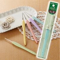 あみものが大好きになる「編みやすい」「持ちやすい」ずっと編んでいたいレース針です。しっかり編める針先と、やさしい手ざわりで指にフィットする立体グリップ付き。きれいに編める針先です。初心者にも編みやすい針先。ソフトタッチのグリップは、可愛いシャーベットカラーです。編みやすい針先:針先から糸が外れにくく、目を拾ったり糸を引き抜きやすい針先形状になっています。きれいに編める針軸:針の規格を決める針の太さ=d寸法の部分を従来より長くしました。このd寸法の部分を長くすることによって、編み目 の大きさが揃いやすく、きれいに編むことができます。手にやさしい持ちやすいグリップ:立体的なカーブで作られたグリップは、自然と指先にフィットします。しっかり握れるので余分な力をかけずに編むことができ、手が疲れにくい設計です。ソフトですべりにくい素材:より幅広い持ち方に対応できるよう、グリップ全体が、すべりにくい素材でできています。手になじみやすい、ソフトな手ざわりです。