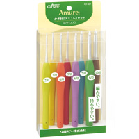 かぎ針「アミュレ」が一度に手に入るセットです。あみものが大好きになる「編みやすい」「持ちやすい」ずっと編んでいたいかぎ針です。しっかり編める針先と、やさしい手ざわりで指にフィットする立体グリップ付き。初心者さんにも安心です。針先から糸がはずれにくく、目を拾ったり、糸を引き抜きやすい針先形状です。かぎ針の基本動作をかんたんに確実に行える工夫をしています。立体的なカーブで作られたグリップは、自然に指先にフィットします。しっかり握れるので余分な力をかけずに編むことができ、手が疲れにくい設計です。より幅広い持ち方に対応できるよう、グリップ全体が、すべりにくい素材でできています。手になじみやすく、ソフトな手ざわりです。