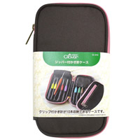 収納力抜群。ジッパー付きポーチ型ケース。グリップ付かぎ針が10本収納できます。かぎ針編みに必要なメジャー、小さいはさみ、段数マーカー、とじ針などが入るサイドポケット付。かぎ針を入れるスペースも、ジッパー付なのでゆとりがあり、コピーした編み図(A4の4つ折り)なども入れる事ができます。シンプルなデザインながら、収納力のあるジッパー付のかぎ針ケースです。写真のかぎ針は商品には含まれません。