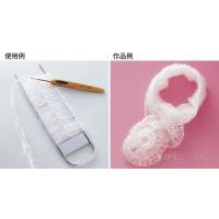 編み器に糸を巻なきがら、かぎ針やレース針で編むだけで華やかなレースが簡単に編めます。ヘヤーピンレースは編み器に糸を巻きながら、かぎ針(糸の細い時はレース針)で止めていく技法。テープ状のものを作り、これをつないでレース地を作ります。